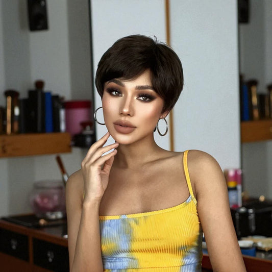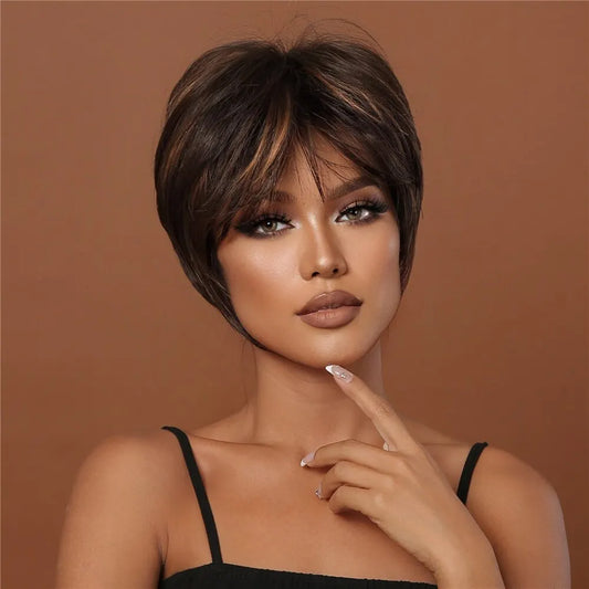 Perruque Courte Femme - NaturalLookPixie™ - Brun avec reflets