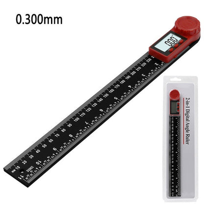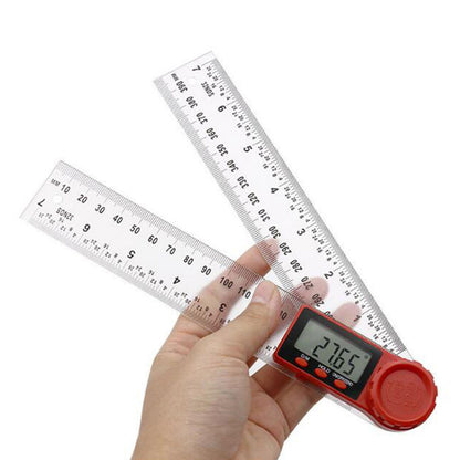 Combinaison de règle et de rapporteur pour une mesure facile. Utilisé simultanément comme rapporteur numérique et rapporteur pour mesurer tous les angles d'atelier. La jauge d'angle numérique a des tailles métriques et impériales gravées au laser sur le bord de la règle, ainsi qu'un affichage numérique précis, et peut mesurer l'angle et la longueur, ce qui est très approprié pour la menuiserie, la construction ou le dessin.
