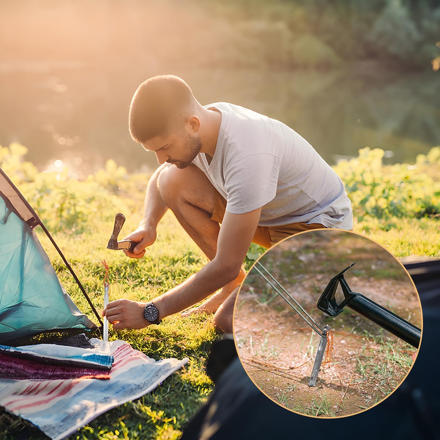 ✓ Montage : plantez à ~45° par rapport au sol, pointe dirigée vers la tente pour une tenue optimale