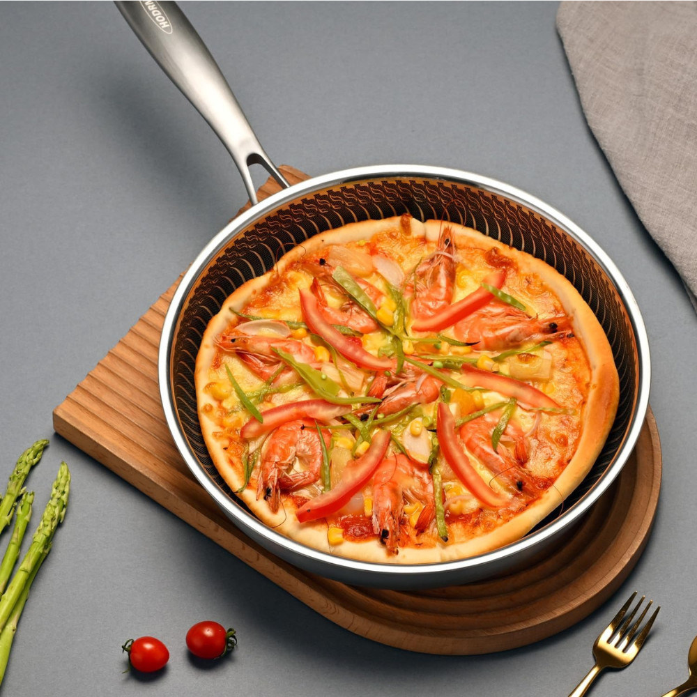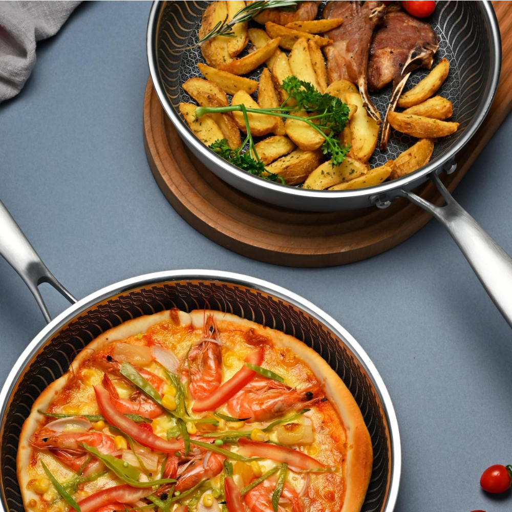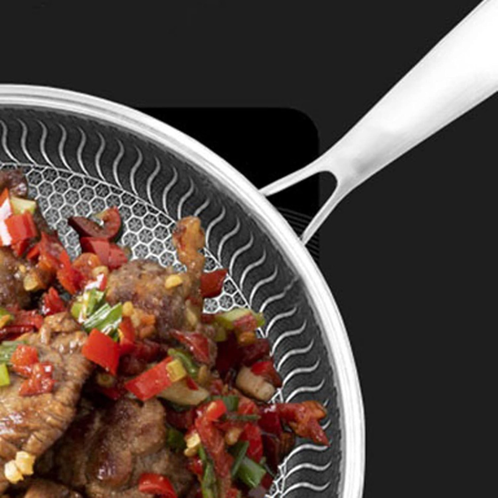 ✔ Type : Poêle antiadhésive en acier inoxydable avec couvercle en verre