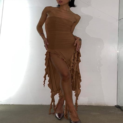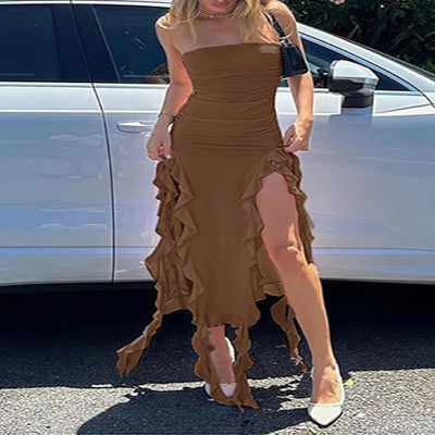 Robe Bustier - ElegantStraplessDress™ - Marron