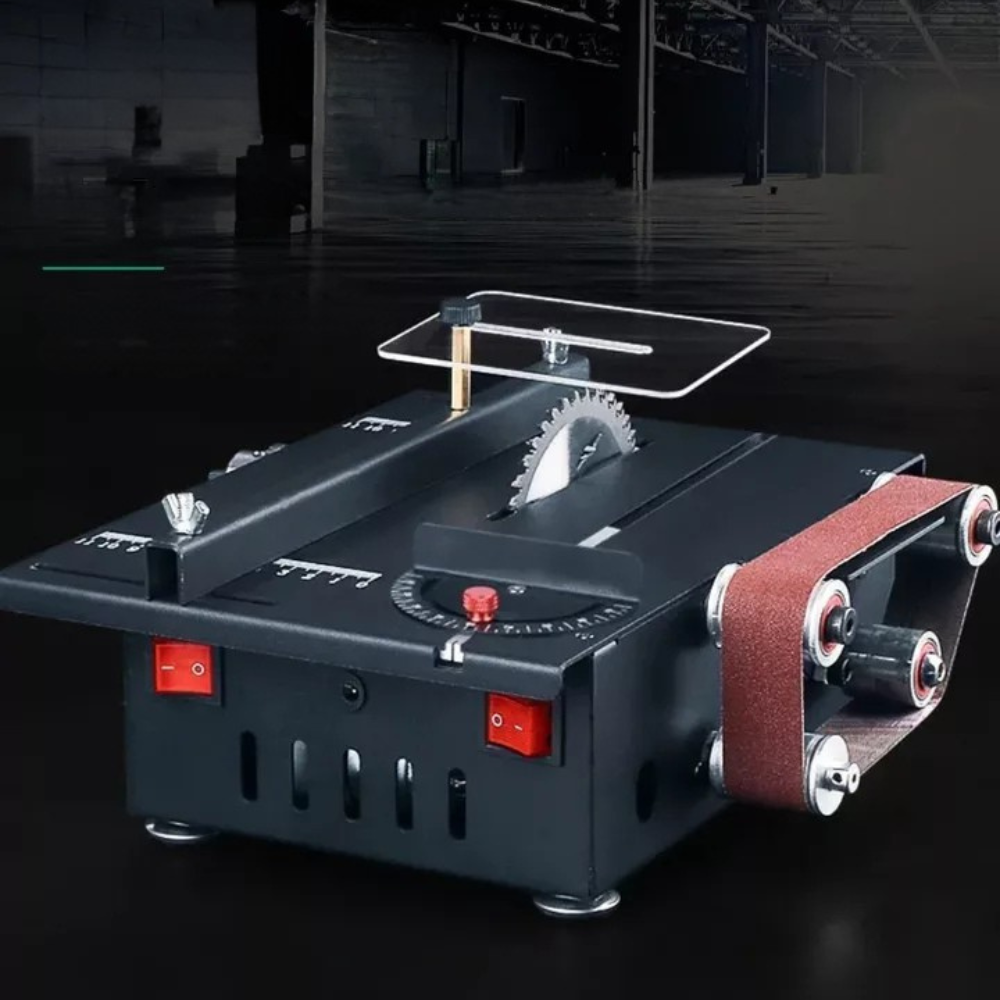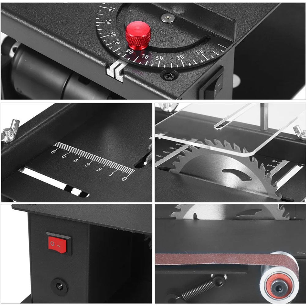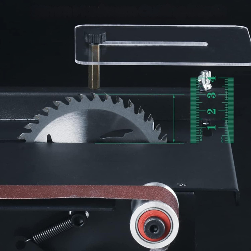 ✔ Fonction 2-en-1 : Scie circulaire de table + ponceuse à bande — pour couper, poncer, affûter, polir, graver