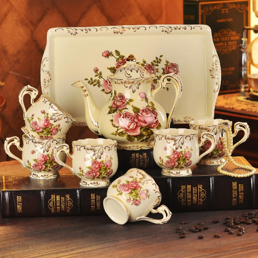 ✔ Contenu : Service complet comprenant théière/cafetière, tasses et plateau assorti