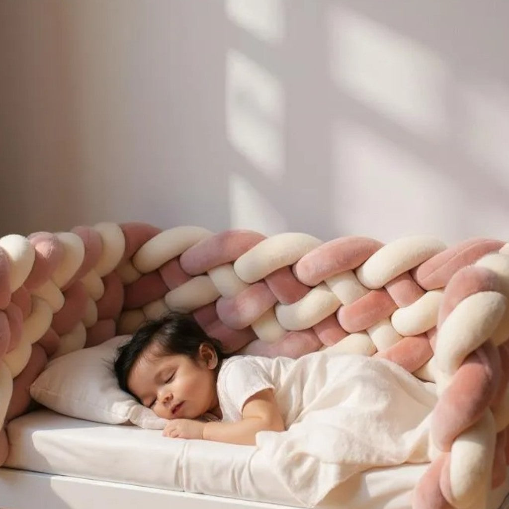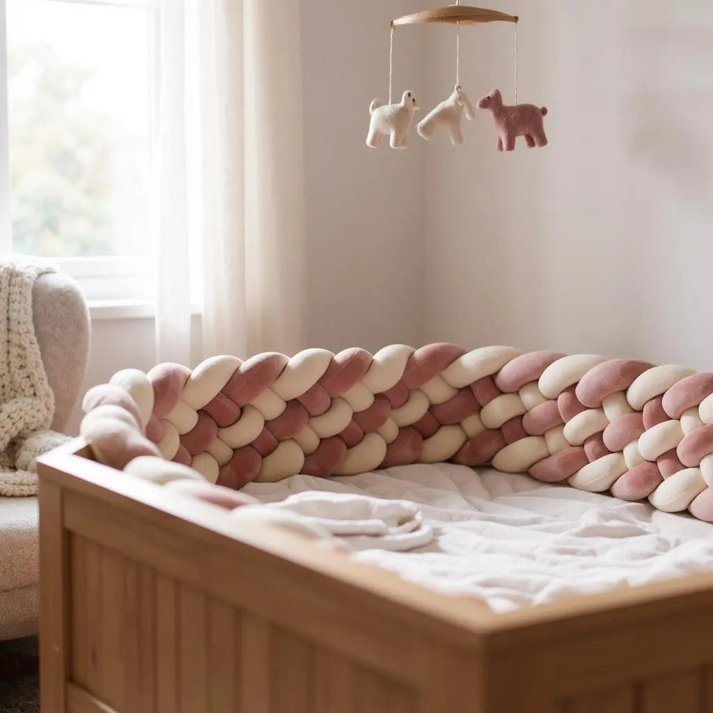 Tour de Lit Tressé - BraidedSafe™ - Vieux Rose & Crème