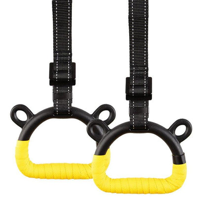 Sûr pour les enfants : kidsRings™ a une poignée en plastique ABS, il est l'un des plastiques les plus solides disponibles au marché, kidsRings™ ne se cassera jamais il est fabriqué pour durer plus longtemps. Les sangles en nylon et la boucle alliée noire sont belles et plus robustes. kidsRings™ est également conçu pour les adultes, ce qui signifie que vous pouvez profiter de temps parent-enfant, jouer ensemble avec vos enfants.
