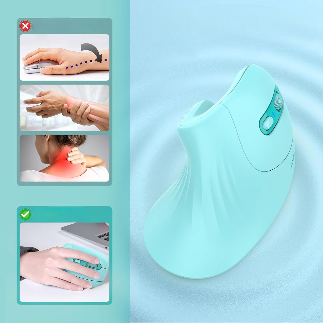 ✔ Design ergonomique : Forme verticale pour une meilleure posture et confort de la main
